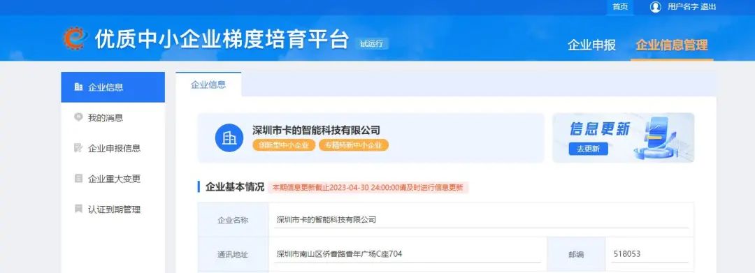 深圳卡的(de)通(tōng)過專精特新認證