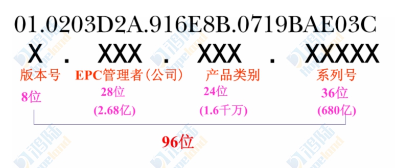 EPC編碼由版本号、産品域名管理(lǐ)、産品的(de)分(fēn)類部分(fēn)和(hé)序列号組成。目前,EPC系統中應用( yòng)的(de)編碼類型主要(yào)有(yǒu)64位、96位及256位三種。